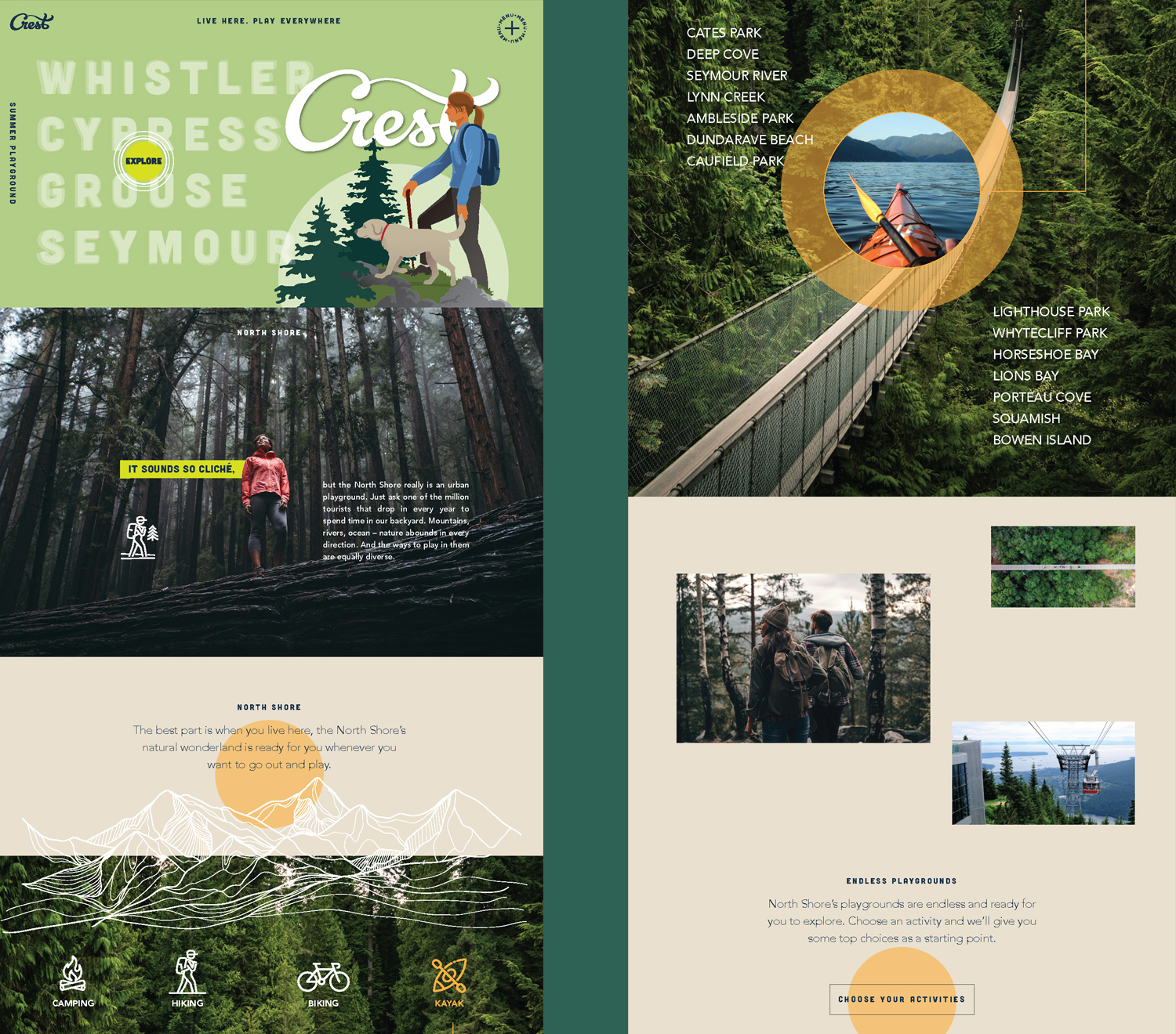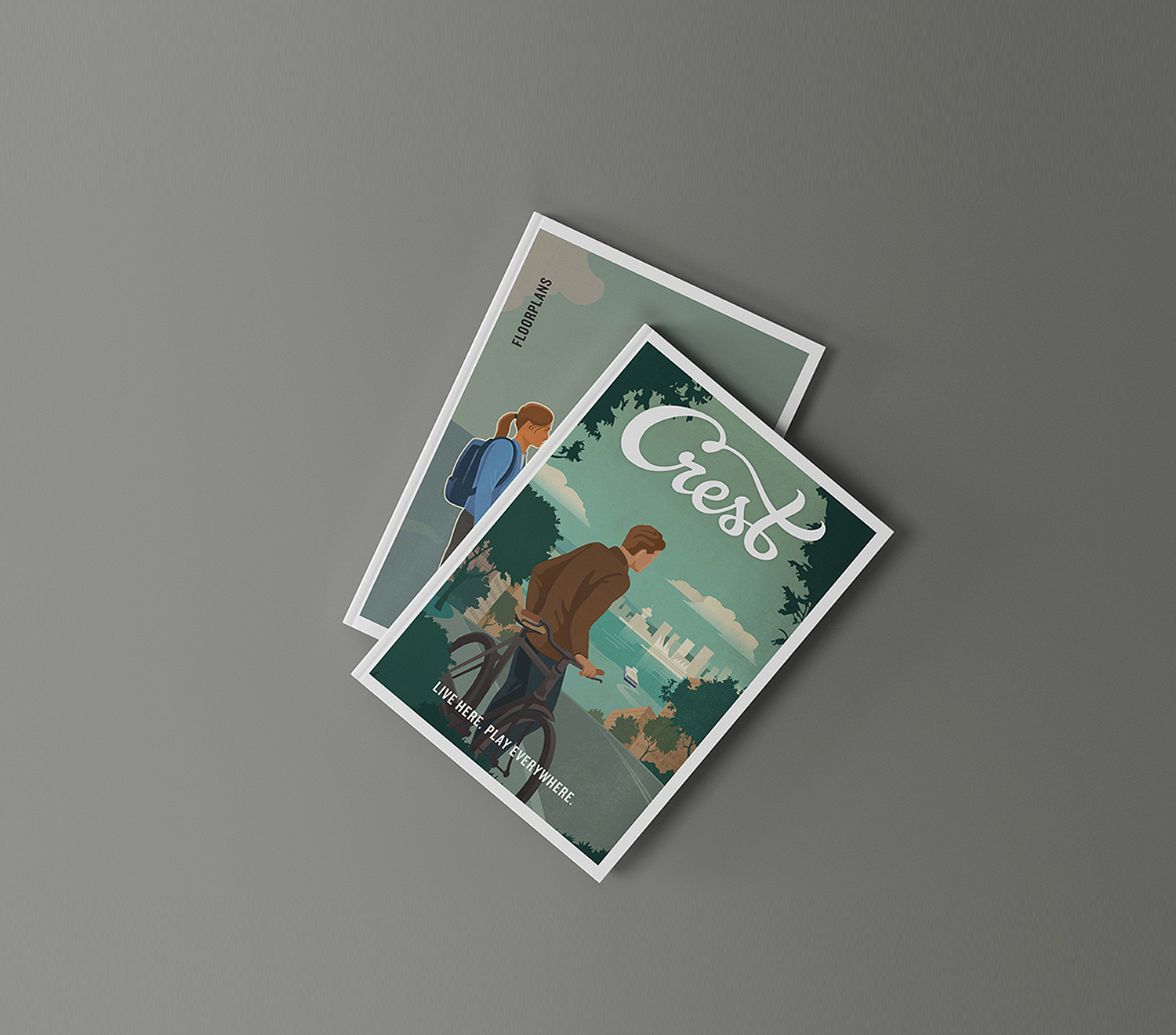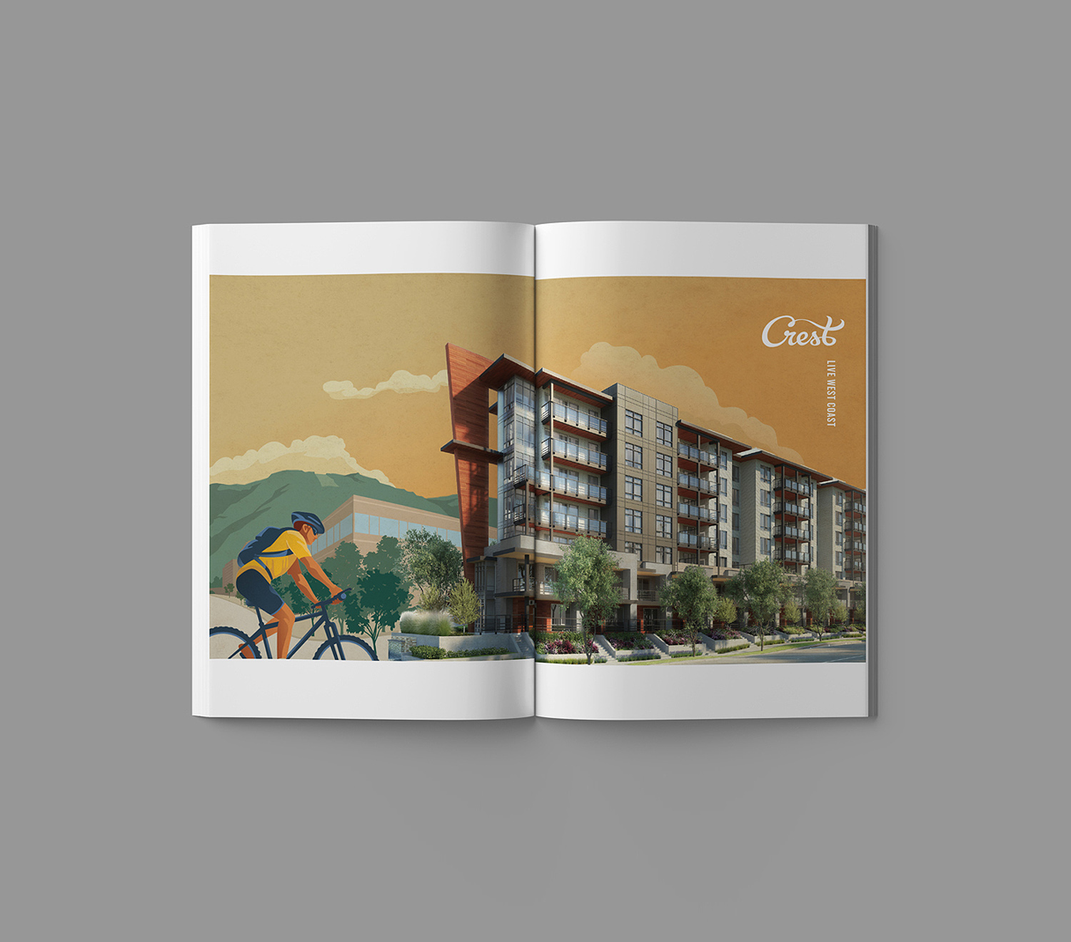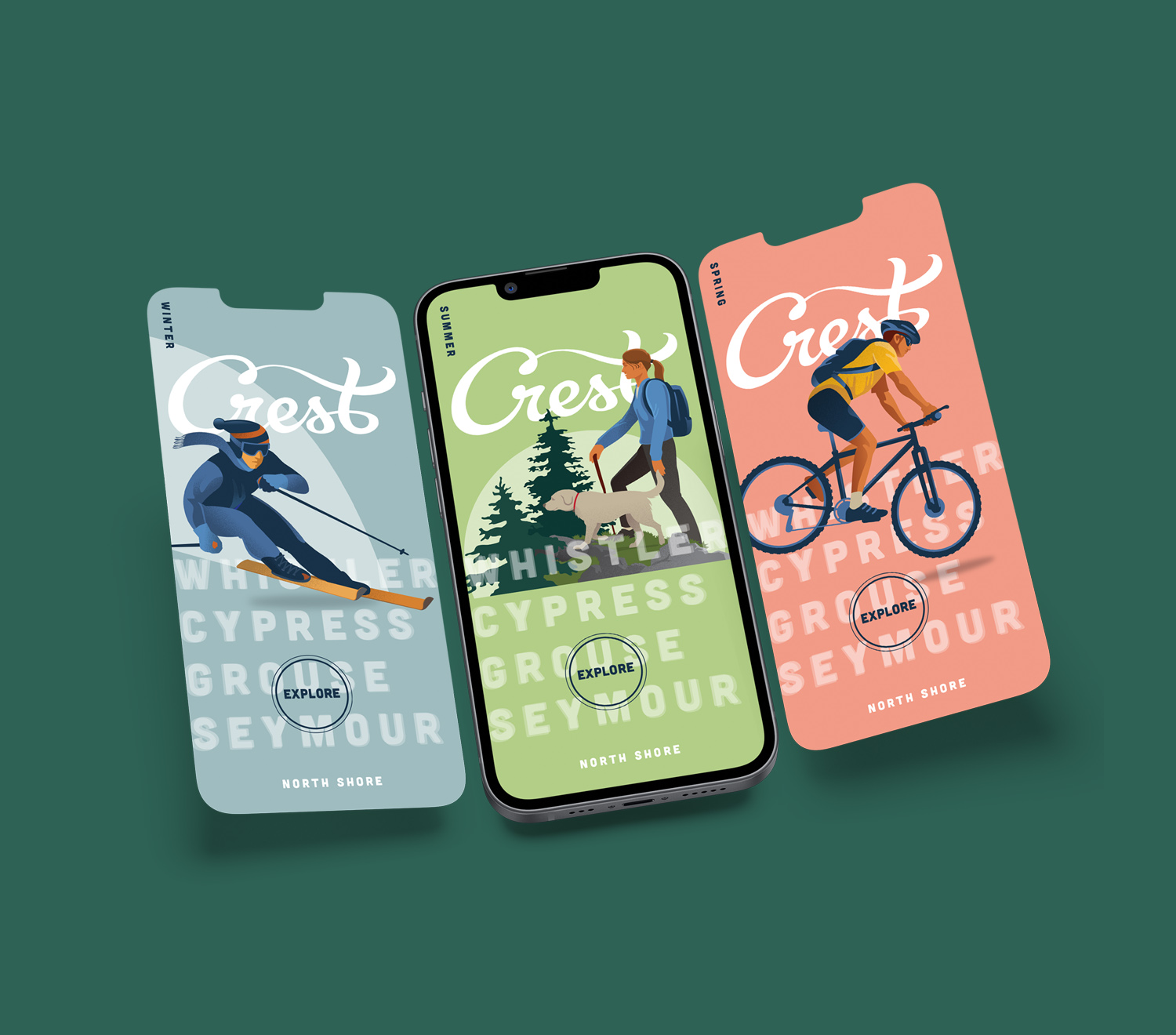 There are two kinds of people in the world, those who want to live in the city and gaze at the mountains, and those who prefer living on the mountain while looking out over the city. This simple insight became the foundation for Crest, a community rooted in nature and outdoor living. The brand identity, anchored by custom illustrations and evocative design, captured Crest’s unique connection to the natural environment and stirred a sense of nostalgia for the great outdoors.